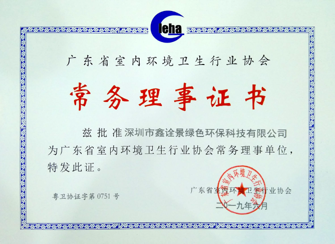 廣東省室內(nèi)環(huán)境衛(wèi)生行業(yè)協(xié)會(huì)常務(wù)理事單位