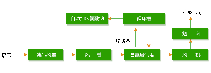 (綜合廢氣)只要使用氫氧化鈉吸收劑進(jìn)行中和處理,其治理工藝流程如下: